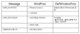 - 이때 대부분 윈도우 프로시저는 이 메세지를 직접 처리 하지 않고 DefWindowProc으로 보내는데 DefWindowProc는 커서의 좌표를 조사해서 커서가 현재 윈도우의 어느 부분에 커서가 있는지 나타내는